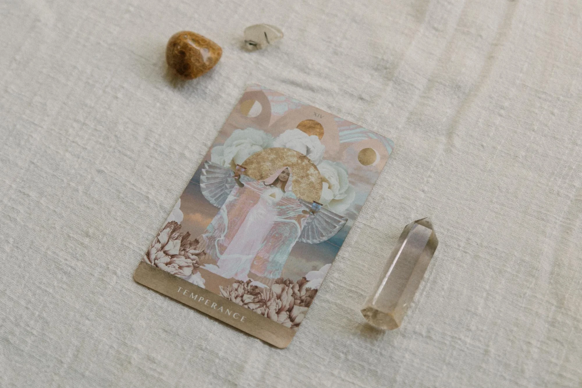 Temperance is the fourteenth Major Arcana Tarot card, coming as a moment of respite and integration after Death. It represents balance, moderation, and the co-creative balance that is present in nature, the constant micro-adjustments to reach a state of homeostasis. It can be seen as a blessing and reminder that things are always working themselves out, we are but in the midst of a lifelong cycle.