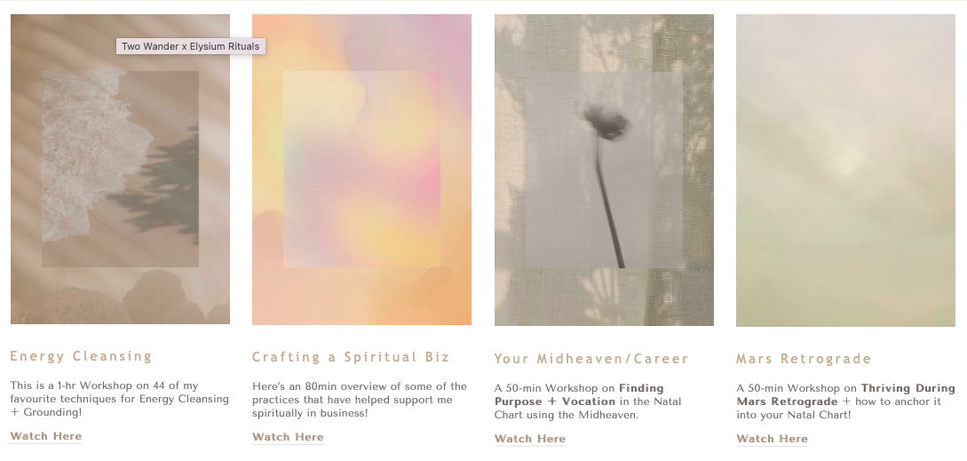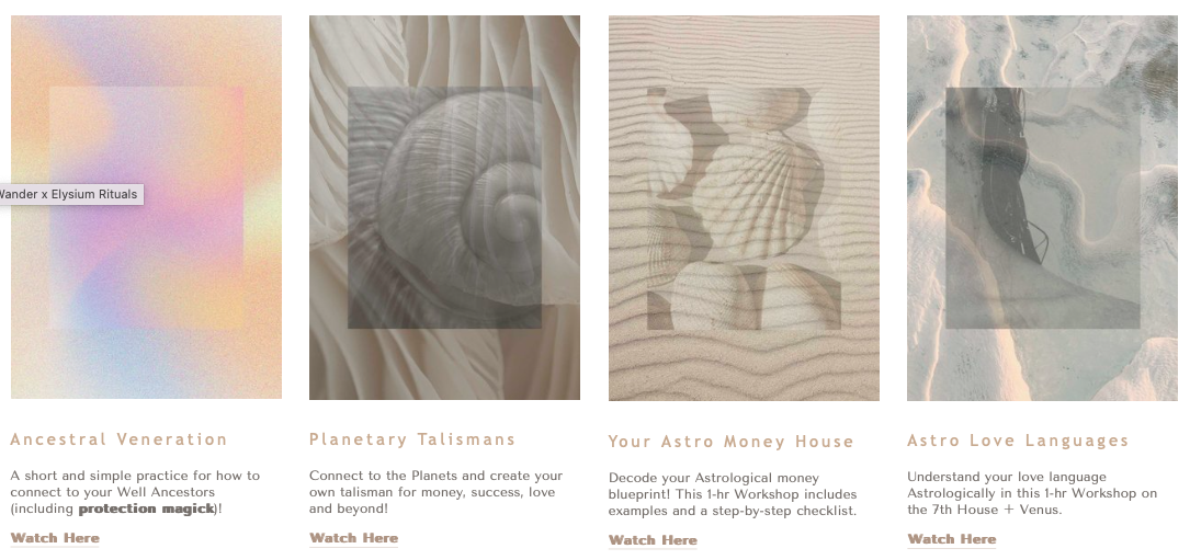 ✨ Access to the whole mystic repertoire of past sessions, including: How to Read Tarot; Protection Magick; Lunar Self-Care; How to Read a Natal Chart; Your Astrological Love Language, and MUCH more -> currently 40+ hours of content valued at over $600!